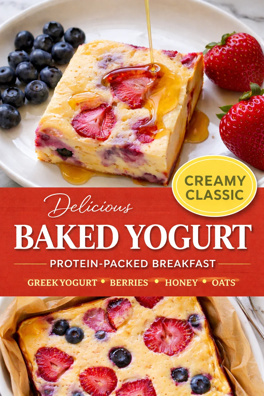 Serve Baked Yogurt warm with roasted peaches and a drizzle of honey, or chilled with a vibrant compote and toasted almonds. It shines as a quick dinner idea when you want something light after a heavy main, or as an indulgent dessert after a family favorite roast. For a balanced plate, serve alongside roasted chicken and a crisp green salad; it brings a gentle, cooling finish to richer flavors and complements oven-roasted mains like baked chicken breast.