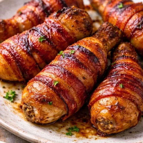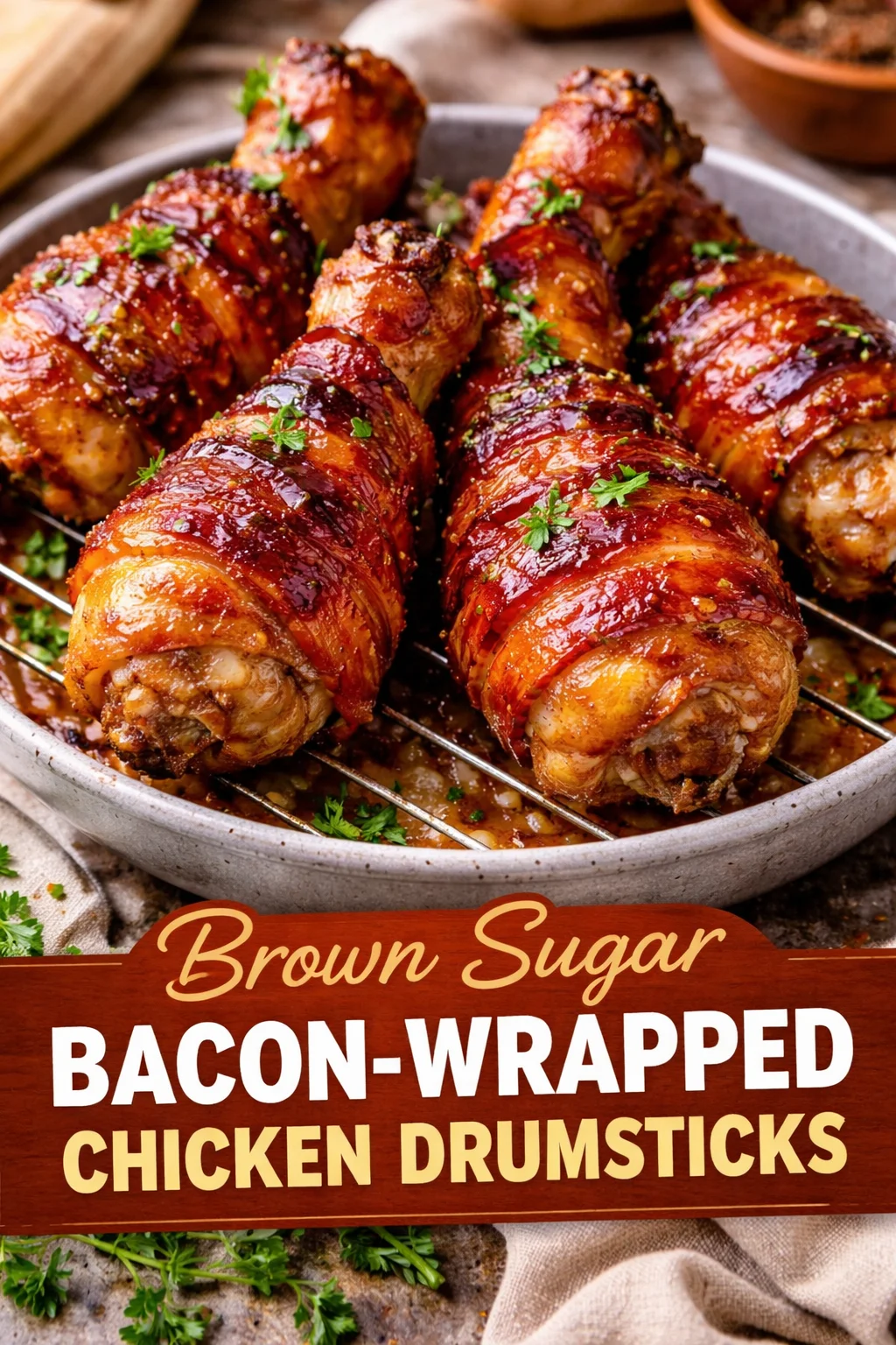 Brown Sugar Bacon Wrapped Chicken Drumsticks — Crispy, Sweet, Soul-Warming