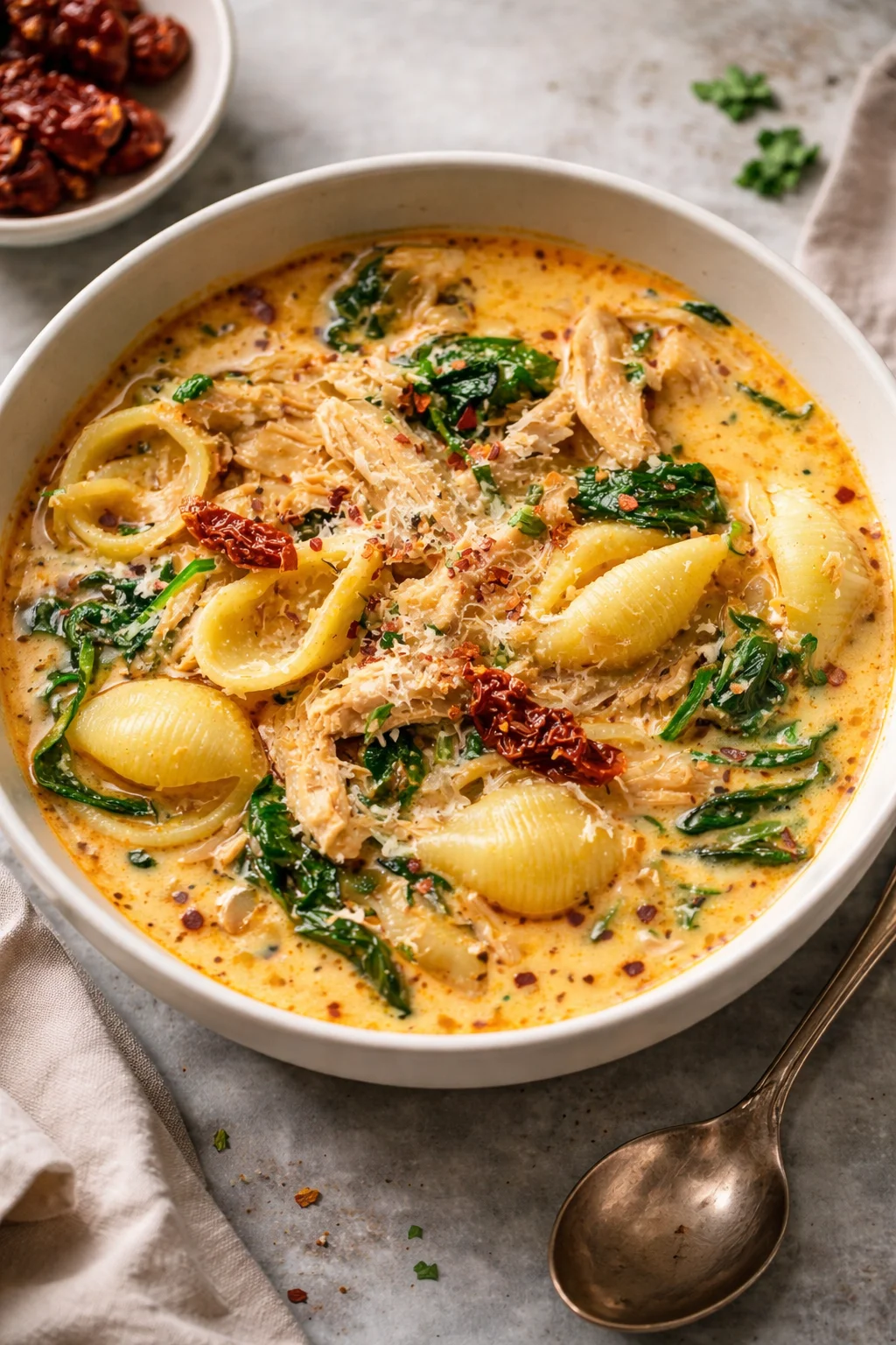 Creamy Chicken and Spinach Pasta Soup