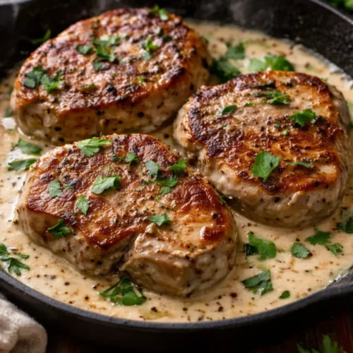 Creamy Garlic Pork Chops is one of those recipes that feels like family — simple, comforting, and irresistibly indulgent. It’s quick enough for weeknights and warm enough for a holiday table, a true cozy favorite that invites conversation and second helpings. Try it, share it with people you love, and let the scent of garlic and cream fill your home. Trust me: this dish will become a gentle, delicious ritual on your table.