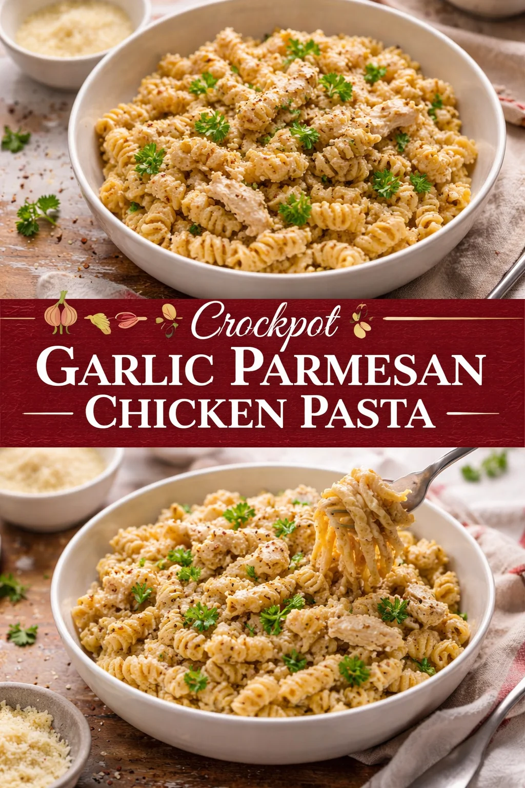 Crockpot Garlic Parmesan Chicken Pasta