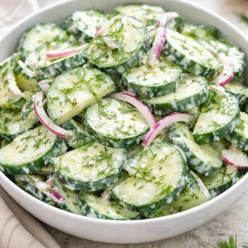 This Cucumber Dill Salad is a small bowl of joy — quick to make, wonderfully fresh, and easy to personalize. Whether you are seeking a healthy option for weekday lunches, a family favorite for summer dinners, or a bright side for a festive meal, this salad has a place at the table. Try it tonight, share it with someone you love, and let it become part of your food memories. I can almost hear the clink of forks and laughter already — go make something delicious.