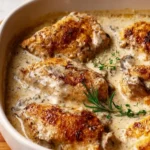 This Easy Chicken Bake shines paired with mashed potatoes, buttered noodles, or a green salad dressed with lemon vinaigrette. For a warm family supper, plate it beside roasted carrots and a glass of crisp white wine or sparkling water with lemon. Imagine a slow conversation, soft music, and laughter as you pass the dish — that’s the scene this meal invites.