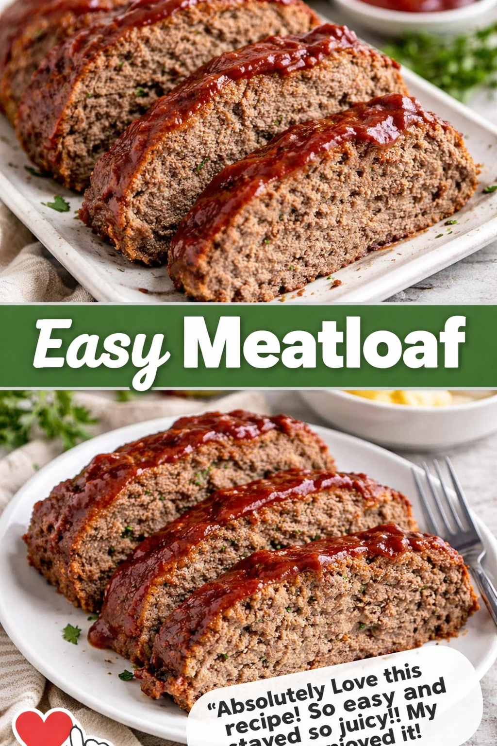 Easy Meatloaf is more than a recipe; it is a little ritual that brings people together, turns ordinary nights into warm memories, and proves that comfort food can be simple, adaptable, and nourishing. Let this be the weeknight hero that becomes part of your family tradition—make it, share it, and savor the way food can quietly heal and celebrate the everyday. Try it tonight and see how a humble loaf transforms your table into a place of laughter and comfort.