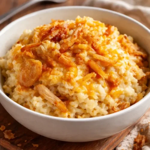 There are dinners that simply hug you — warm, golden, and just a little bit caramelized around the edges. That is exactly what the French Onion Chicken and Rice Bake feels like: a comforting, savory embrace after a long day. The aroma of slowly caramelized onions and thyme drifting through the kitchen, the creamy rice soaking up beefy broth and melted cheese, and a tender chicken that flakes apart with a fork — these are the memories that make a house feel like home. If you love a fuss-free, soulful meal, try this version that evokes Sunday suppers and cozy weeknights alike. For a one-pan twist if you want something even simpler, check out this one-pan French Onion Chicken and Rice to inspire a slightly different approach.