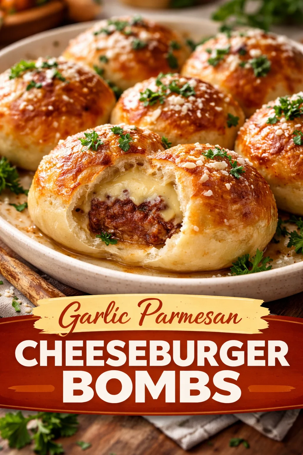 There are recipes that become memories—warm, cheesy pockets that make you smile the moment you smell them—and Garlic Parmesan Cheeseburger Bombs are one of those. Picture a cozy evening: the table lit by soft lamp light, the air filling with the savory scent of garlic and melting cheese, and everyone reaching for one of these golden, pillowy bites. If you want a quick dinner idea that feels like a hug on a plate, this is it. If you adore the garlic-parmesan flavor family, you might also love baked garlic parmesan chicken and potatoes, which pairs beautifully with these bombs.