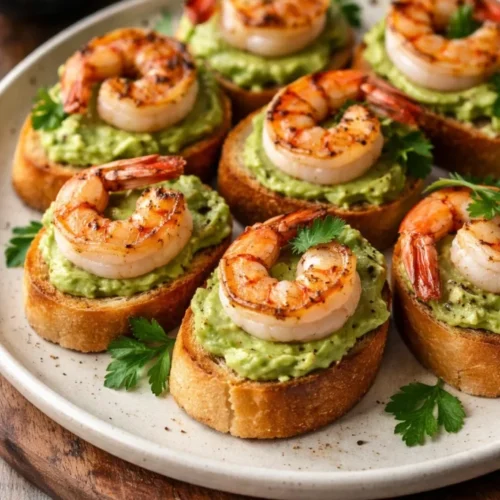 Garlic Shrimp Crostini with Avocado is a small luxury that makes ordinary moments feel special — quick enough for a weeknight, elegant enough for a party, and warm enough for a cozy night in. It’s a recipe that invites improvisation and brings people together, bite by bright, garlicky bite. Try it tonight; share the extra crostini with someone you love, and let a simple plate become a lasting memory.