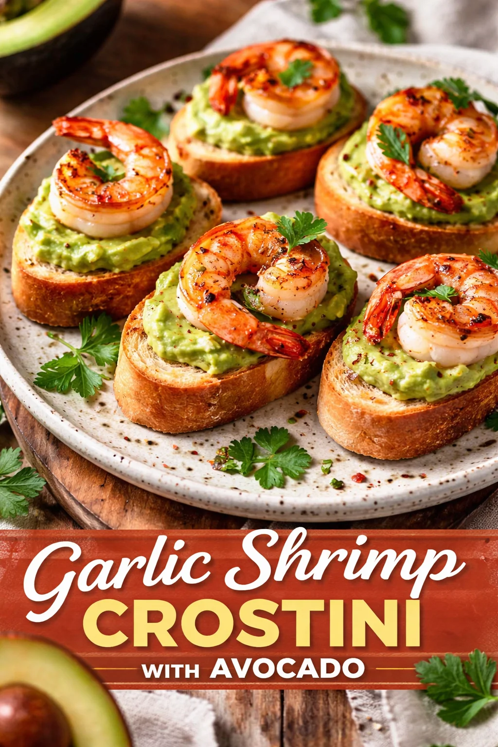 Garlic Shrimp Crostini with Avocado