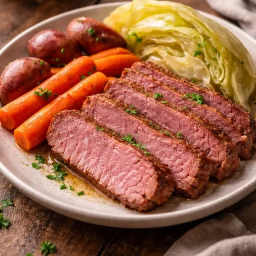 Yes — prepare the corned beef a day ahead, refrigerate, and gently reheat the slices in the cooking liquid. Flavors often deepen overnight, making it taste even better the next day.