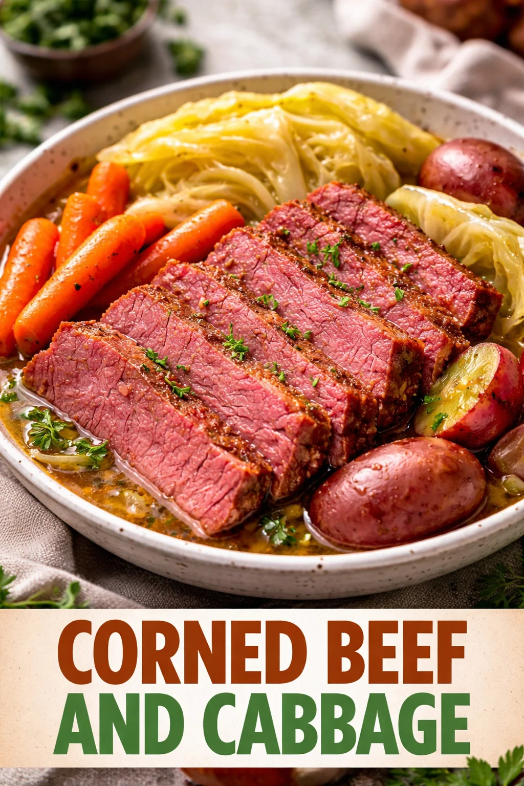 - Finish and serve. Spoon a bit of warm broth over the sliced meat, arrange vegetables around it, and dot butter on the cabbage. Sprinkle chopped parsley for color and brightness. This is the moment your table fills with steam and the soft clink of forks — savor it.