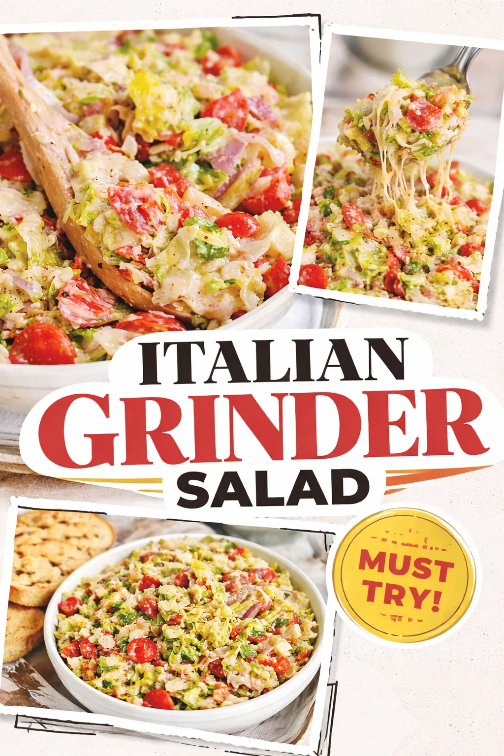 The Italian Grinder Salad (Chopped Sub Salad) is more than a recipe; it is a memory-maker. It takes familiar deli flavors and turns them into a communal bowl that invites conversation, sharing, and second helpings. Quick enough for weeknights, special enough for gatherings, and endlessly tunable to your favorite flavors, this salad has a way of becoming part of family traditions. Try it tonight, tweak it tomorrow, and don’t forget to pass the bowl around. Share the joy and let this comforting, colorful dish become a staple in your kitchen.