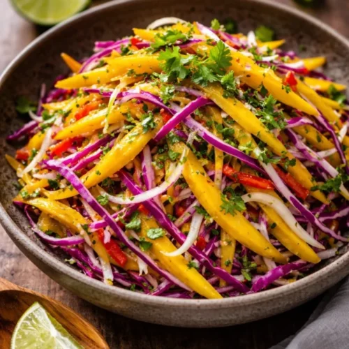 Mango Slaw is a small, joyful dish that invites connection — it brightens weeknights and elevates gatherings with its triumphant color and refreshing flavor. Whether you make it as a healthy option for lunch, a quick dinner idea alongside grilled protein, or a festive meal side at a barbecue, it’s the kind of recipe that becomes part of your story. Try it, tweak it, and share it; I promise it will bring warmth, smiles, and a little sunshine to your table.