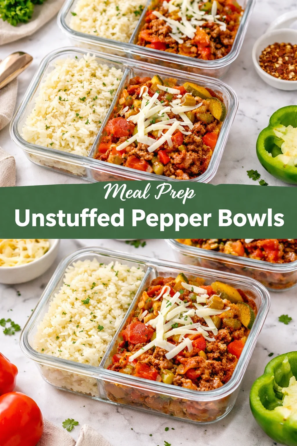 These Meal Prep Unstuffed Pepper Bowls pair beautifully with a side of crusty bread or a simple green salad drizzled with a lemon vinaigrette. For drinks, consider a chilled glass of sparkling water with a splash of lime, or a classic iced tea, making it perfect for any occasion — from casual dinners to special celebrations.