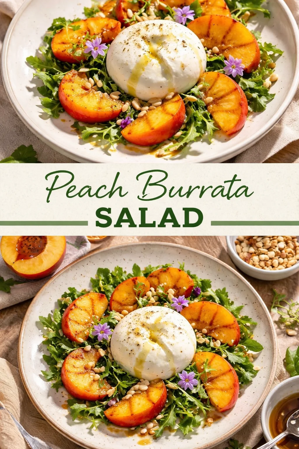 Serve this Peach Burrata Salad on a warm evening with crusty sourdough and a chilled glass of rosé or a sparkling lemonade. For a celebratory brunch, pair it with delicate smoked salmon blinis and freshly brewed coffee. Picture a long table under string lights, laughter, and this luminous salad placed center stage—simple, beautiful, and totally shareable.