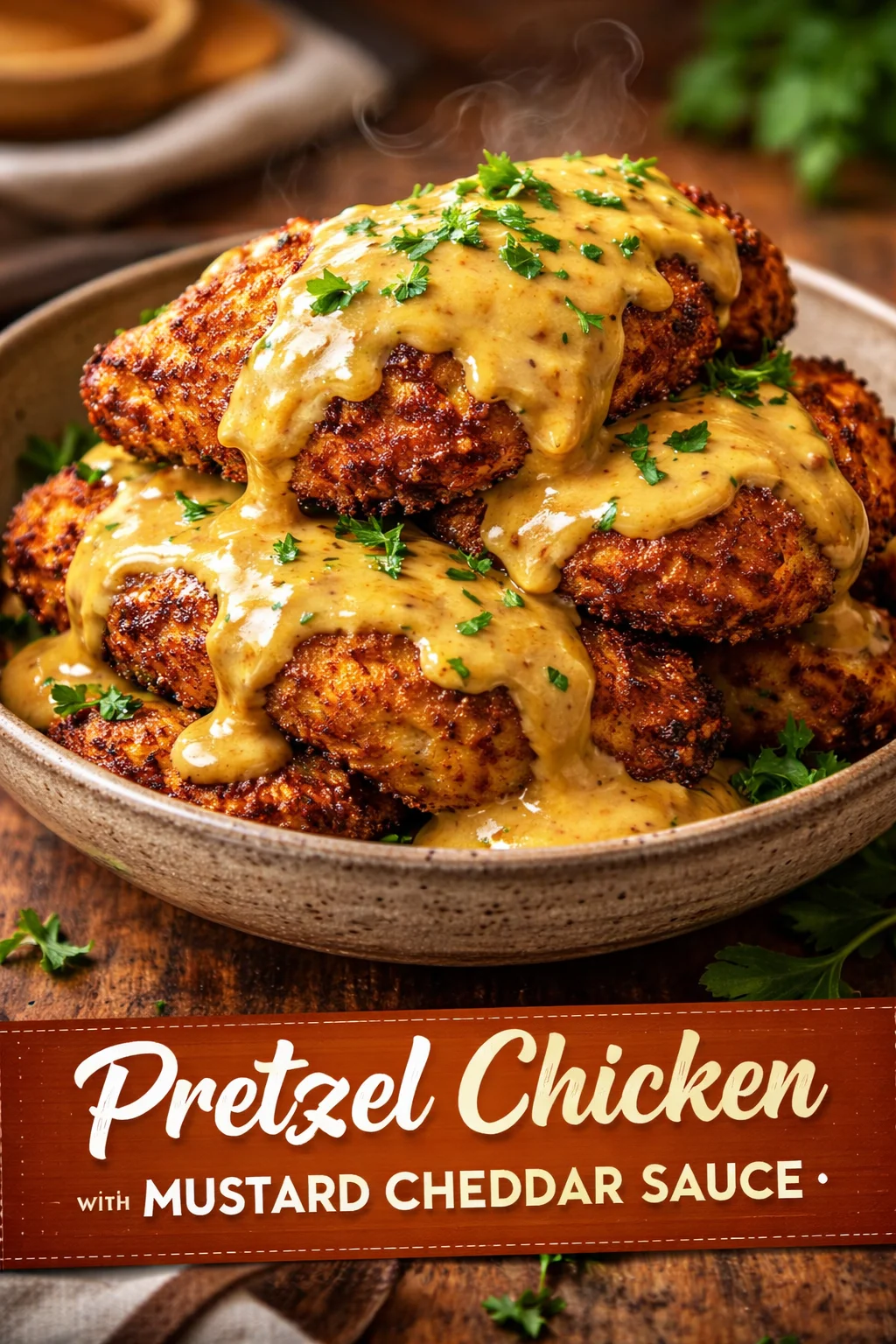 Pretzel Chicken with Mustard Cheddar Sauce — A Crispy, Cozy Dinner That Feels Like Home
