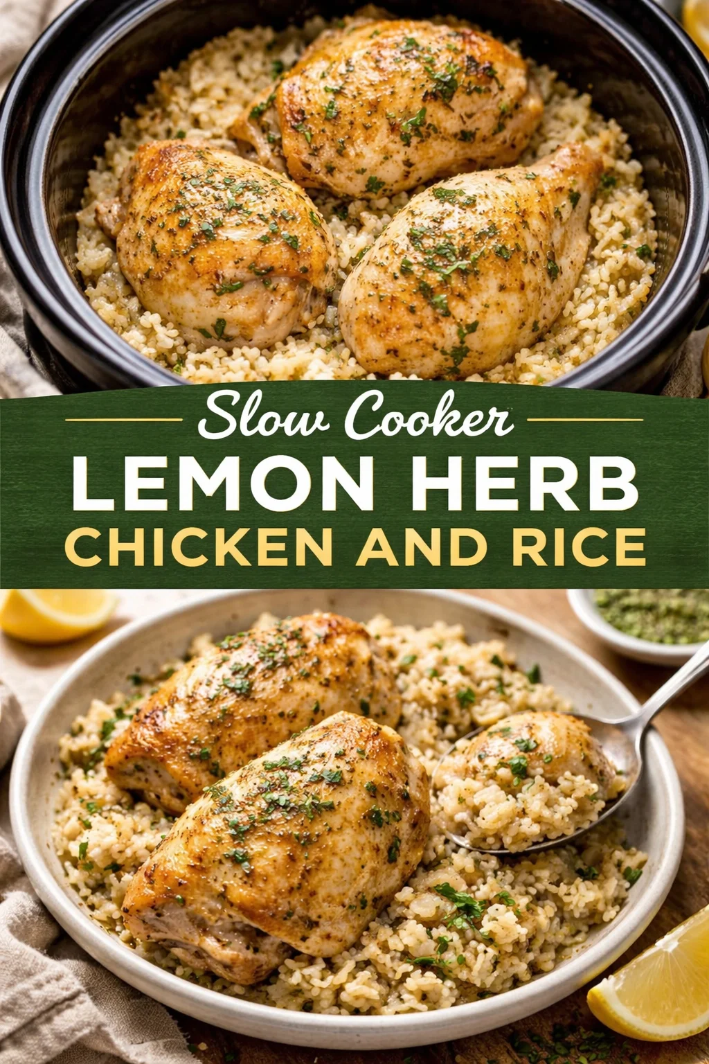 Ready for a hearty meal faster than takeout? This Slow Cooker Lemon Herb Chicken and Rice is perfect!