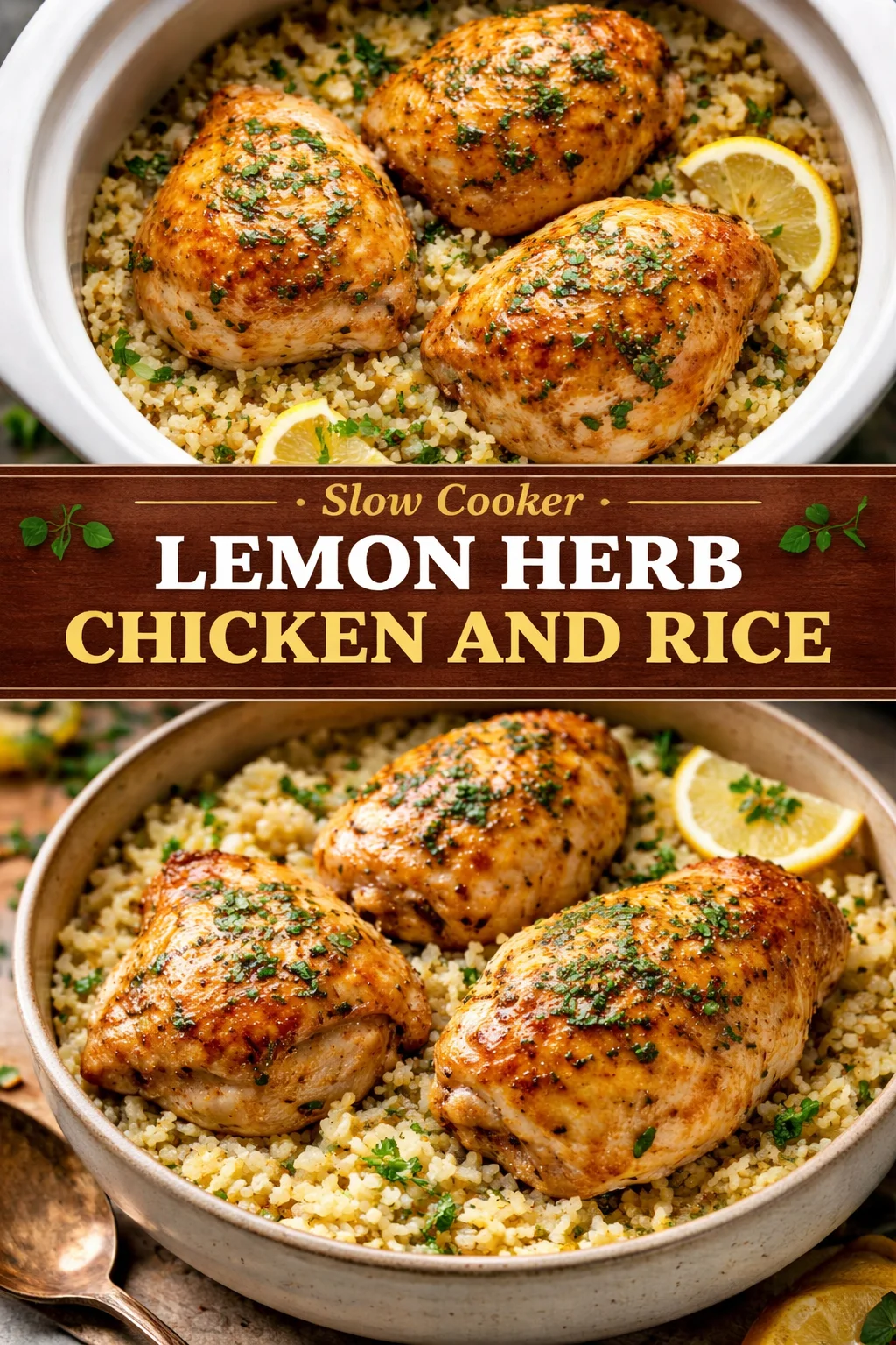 Slow Cooker Lemon Herb Chicken and Rice