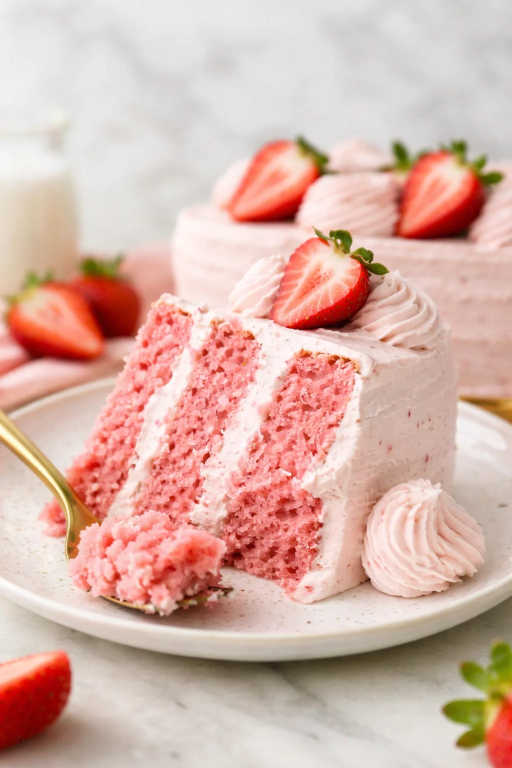 This Strawberry Cake with Strawberry Cream Cheese Frosting is more than a dessert—it is a simple ritual that turns ordinary days into something to remember. The balance of juicy strawberry and tangy cream cheese, the soft texture that melts on your tongue, and the wings-it-gives-to-connections with family or friends make every slice feel like a small celebration. If you want to explore another version of this classic with helpful step-by-step photos and tips, check out this Homemade Strawberry Cake Recipe (with cream cheese frosting) for inspiration and technique. Try it, share it, and let this cake become part of your sweetest traditions.