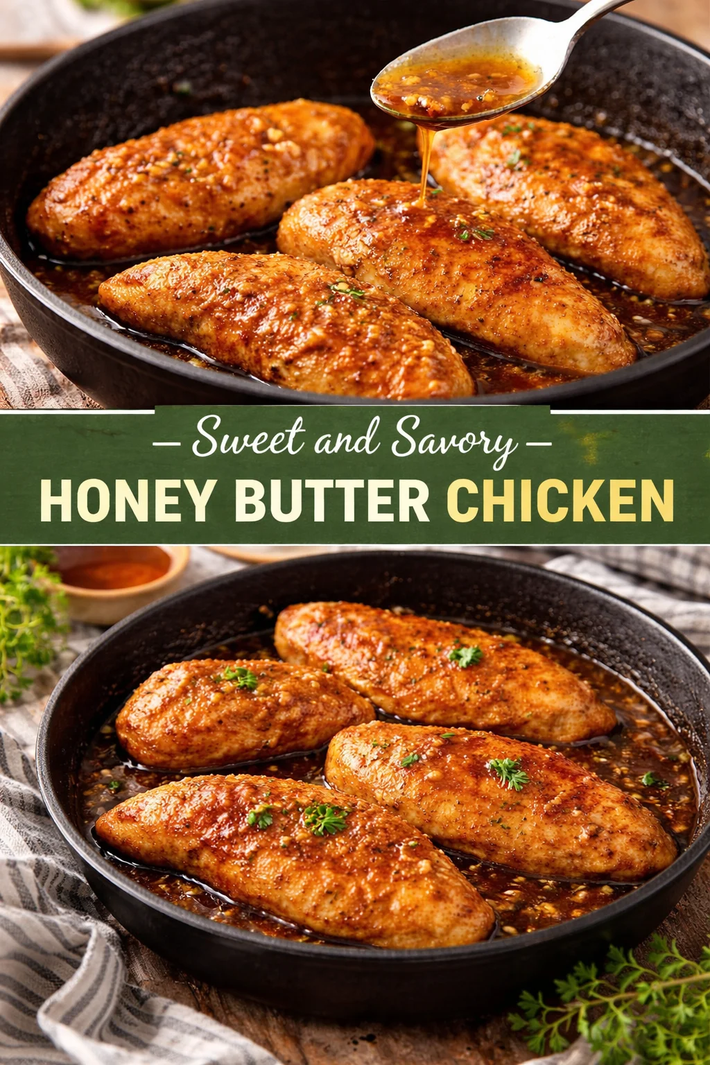 This Sweet and Savory Honey Butter Chicken is best served alongside fluffy rice or buttery mashed potatoes, perfectly soaking up that luscious sauce. Pair it with a fresh garden salad topped with a zesty vinaigrette or some steamed broccoli for a colorful plate. A chilled glass of iced tea or a light white wine will complement the meal beautifully. Imagine enjoying this comforting dish on a Sunday evening, sharing laughs and stories with those who mean the most.