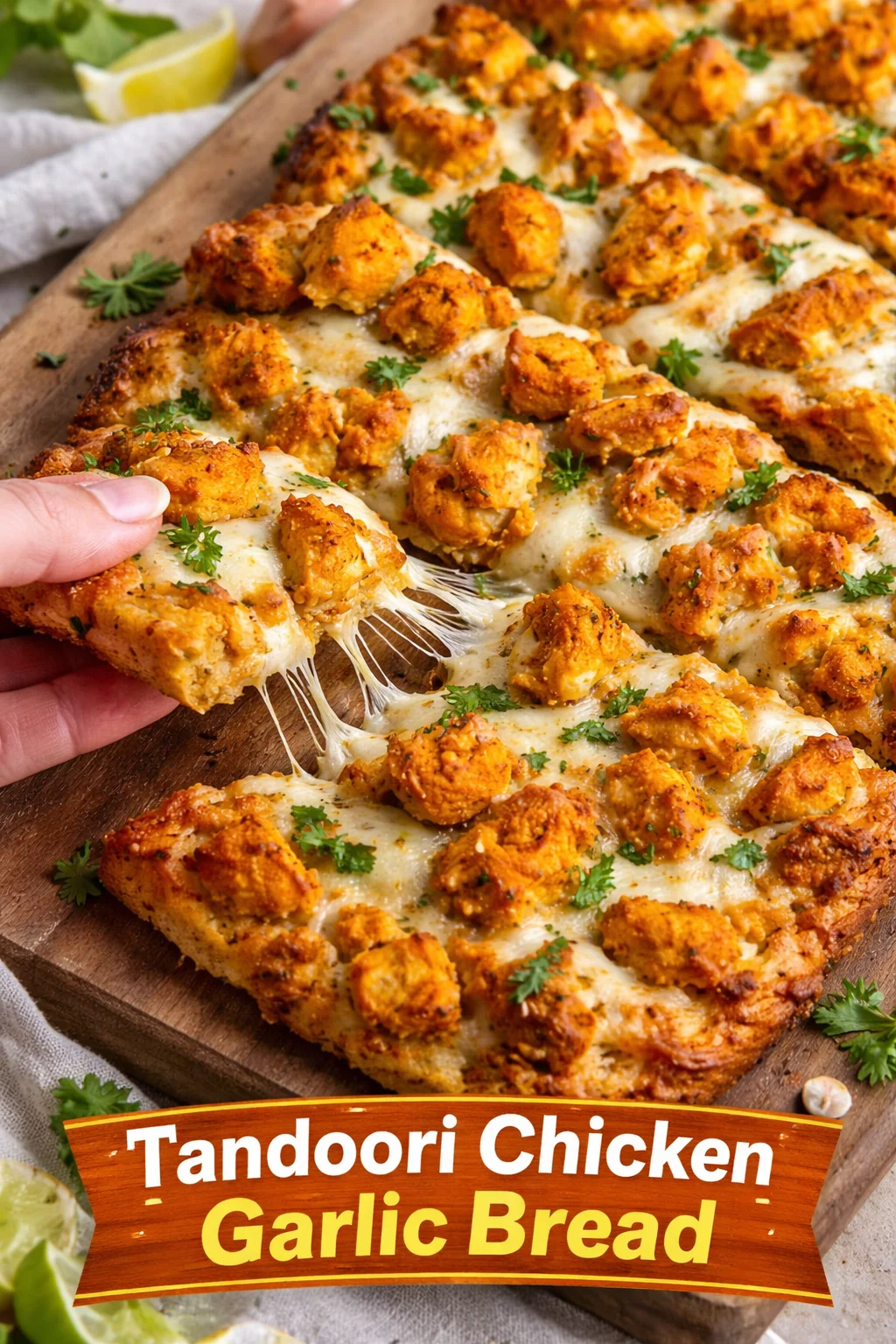 Tandoori Chicken Garlic Bread is the kind of recipe that arrives at the table carrying warmth, spice, and a thousand little smiles. It’s simple enough for weeknights, festive enough for guests, and cozy enough to become a new family favorite. Try it this week, share it with the people you love, and enjoy that moment when everyone reaches for the same warm, spiced slice—because food like this is really food for the heart.