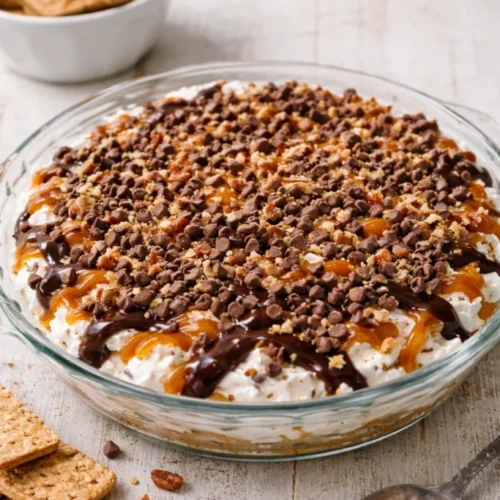 Turtle Cheesecake Dip captures the simple joys of gathering: the comfort of familiar flavors, the thrill of a little indulgence, and the ease of an easy recipe that feels special. It is both a family favorite and a crowd-pleasing festive meal addition that brings people together one spoonful at a time. Try it tonight, share it with someone you love, and let this gooey, crunchy dip become one of your warm, happy traditions.